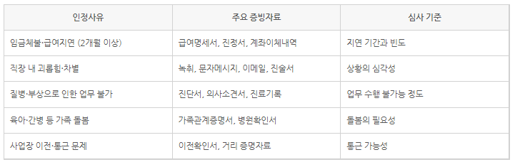 자발적 퇴사는 실업급여 수급이 가장 궁금해지는 부분 중 하나예요. 2026년에는 자발적 퇴사 인정 사유가 조금 더 세분화될 가능성이 있어요. 예를 들어 직장 내 괴롭힘, 장시간 노동, 임금 체불 등 불가피한 퇴사 사유는 보다 명확한 기준이 제시될 수 있어요. 다만 단순히 “그만두고 싶어서 퇴사한 경우”는 기존처럼 실업급여 지급이 어려워요. 자발적 퇴사라도 정당한 사유가 있다면 증빙을 제대로 준비하는 것이 핵심이에요. 기준이 명확해질수록 오히려 준비하기 쉬워진다고 보면 돼요.